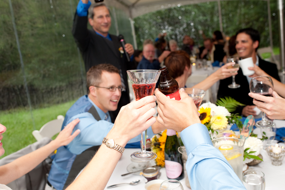 When planning any outdoor event in Western Washington, or Oregon, or anywhere that rain can sweep though despite a sunny forecast, a Plan B, is crucial! Tenting is the answer. If you do it right, it even makes a beautiful Plan A. There are ways to keep views unobstructed, and guests dry, at the same time.